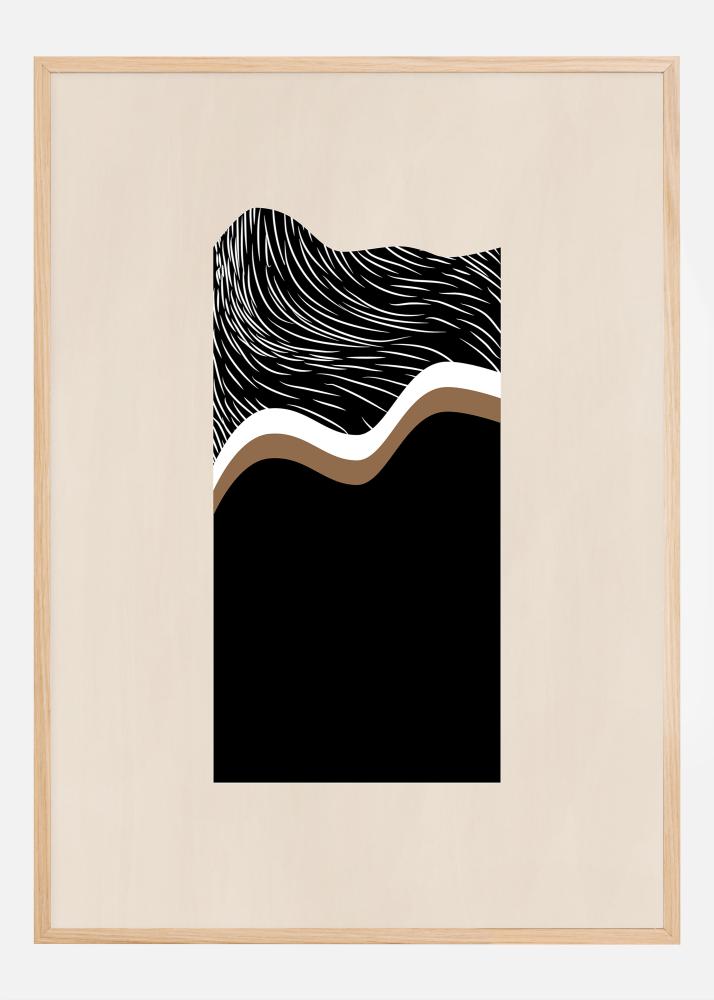 Este pôster combina gráficos ousados com uma paleta de cores sutil para criar um contraste visual que é ao mesmo tempo impressionante e elegante. O fundo preto dá profundidade à obra de arte, enquanto as ondas dinâmicas brancas e douradas criam uma ilusão de movimento. Este design minimalista mas expressivo é inspirado tanto pelo mundo natural quanto pelas correntes de arte moderna, e seria uma adição marcante a qualquer casa ou escritório moderno.