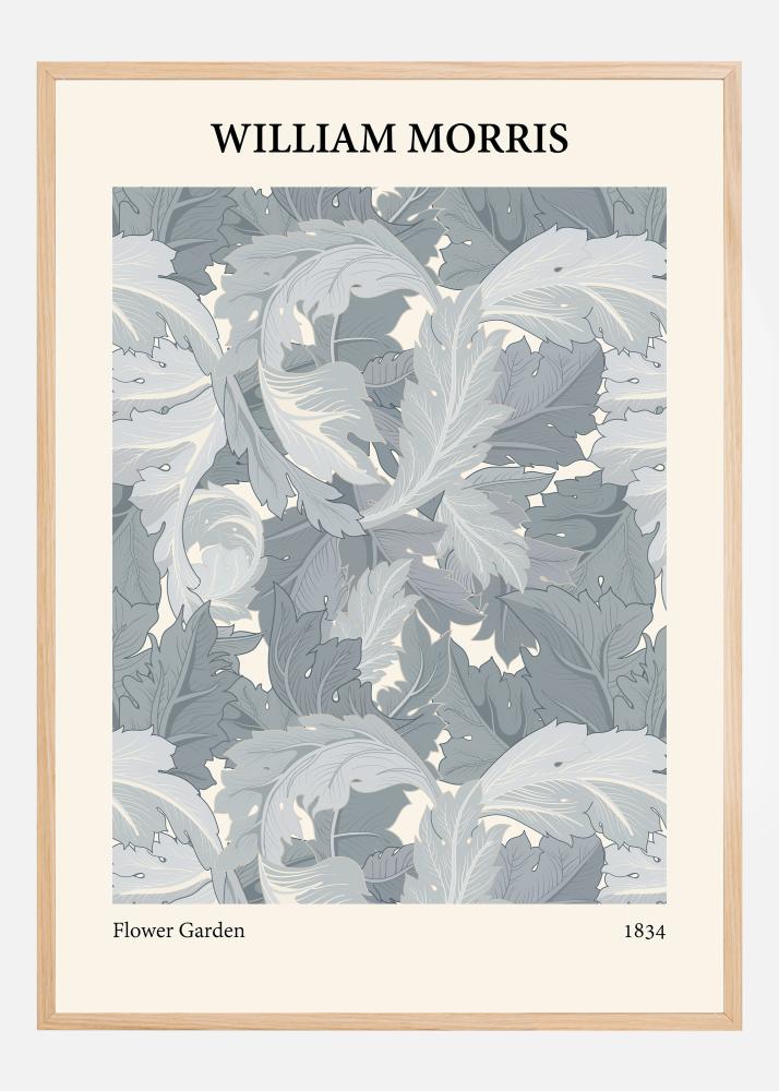 Este pôster com seu exuberante e sofisticado motivo de William Morris oferece uma sensação de tranquilidade e elegância clássica. O design é uma ode à abundante vegetação frequentemente associada a Morris e seu trabalho no movimento Arts and Crafts. O motivo, denominado "Flower Garden", contém uma composição densa de folhas e flores, exibidas em tons frios de azul e cinza com toques de creme. Cada detalhe deste cartaz é cuidadosamente pensado, criando a sensação de um jardim virtuoso e ordenado.