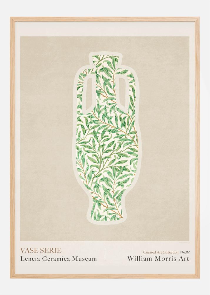 Este delicado e inspirado pôster natural é o número 07 da nossa "Curated Art Collection" do Lencia Ceramica Museum, que celebra o legado artístico de William Morris. Apresenta a silhueta de um vaso clássico, preenchido com um dos distintos padrões de planta verde de Morris, mostrando sua maneira magistral de combinar forma e função com beleza estética no design. É uma homenagem atemporal à visão de Morris e sua capacidade de se inspirar na natureza e transformá-la em arte.