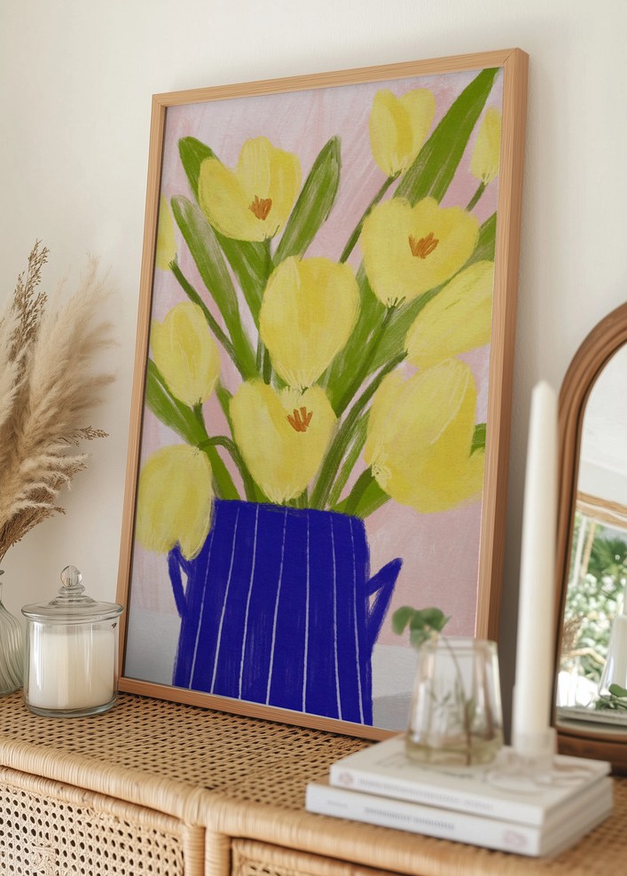 Yellow Tulips In a Vase Póster (21x29.7 cm (A4))