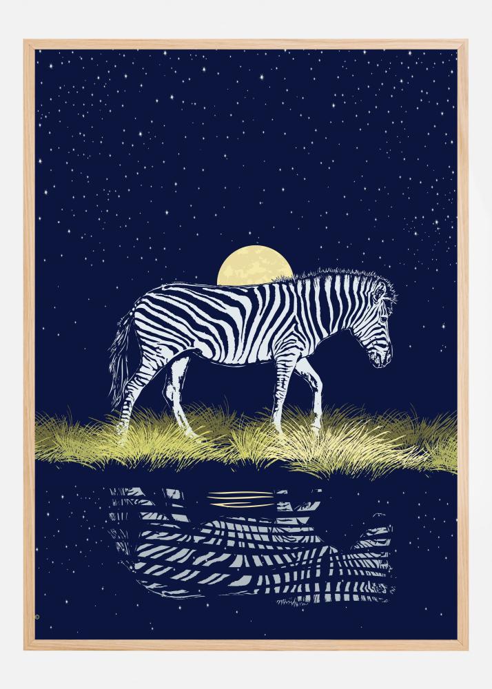 Zebra at Waterhole Moonrise Póster (21x29.7 cm (A4))
